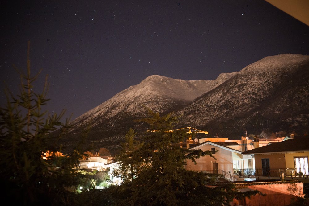 La foto che vedete è di una notte di Gennaio 2013, con Monte Gennaro imbiancato da una bellissima nevicata.