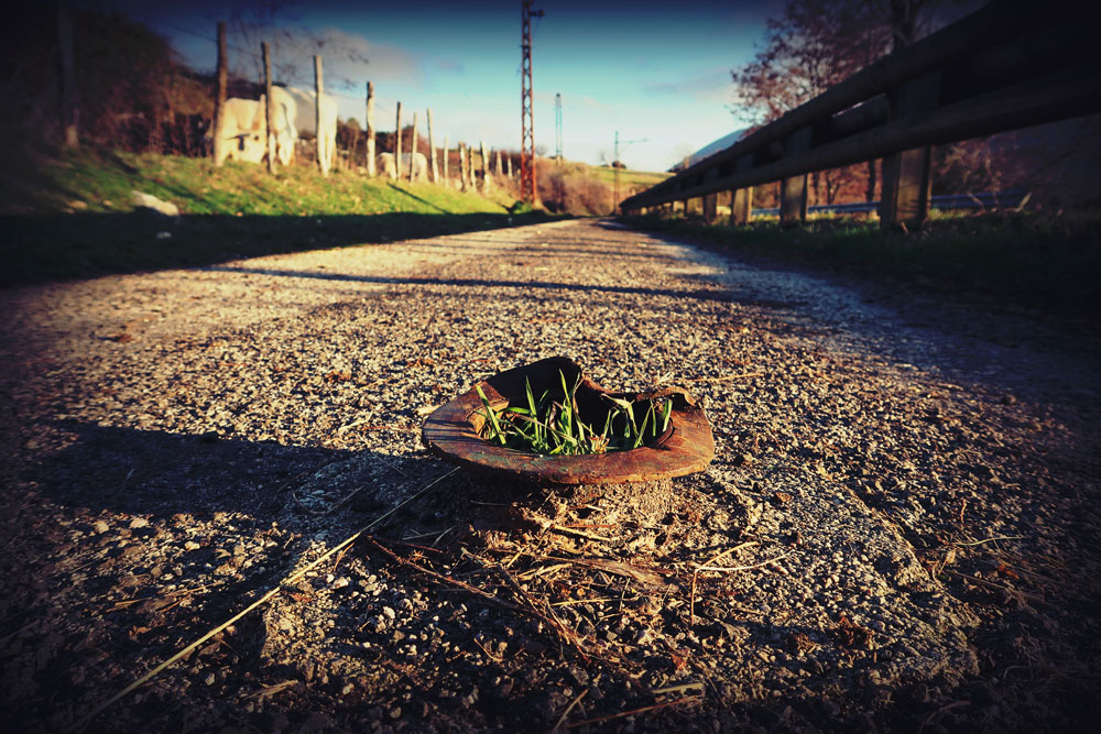 Questo nella foto è uno dei pericoli del manto: all’incrocio della pista con le strade provinciali erano stati piazzati dei paletti per evitare l’ingresso di mezzi a motore nella ciclabile. I paletti ora sono stati rimossi ma in maniera piuttorsto approssimativa, e quello che rimane sono queste borchie di ferro pericolose soprattutto quando scendendo da Fiuggi verso Paliano si acquista una certa velocità. Alcune delle borchie sono anche taglienti, il consiglio è quindi quello di prestare attenzione a ogni incrocio, non alle macchine ma al terreno.